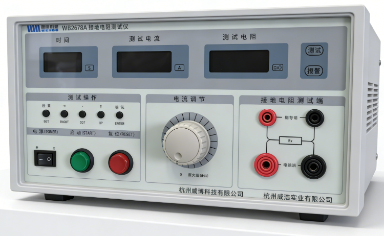 WB2678A接地电阻测试仪是根据GB4706.1-1998和GB9706.1-1995国家标准而生产的用来测试被测件接地电阻的专用测试仪器,本仪器采用数字表直观地显示被测件的接地电阻和测试回路电流,具有显示清晰,分辩率高,误差小等优点,二档报警电阻值的设定可以反映各种试品接地性能上的差异,同时本仪器采用本所独创的倒计时定时控制电路更使得测试过程安全可靠,测试进程一目了然。另外仪器还具有过电流报警功能,能有效保护被测件在误操作时(比如瞬间过电流)不会损坏。本仪器可广泛适用于各类仪器、家用电器、医用电器等生产厂家测试接地电阻,同时也是科研机构、质量技术监督部门不可缺少的接地电阻试验设备。