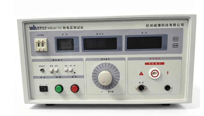 WB26系列耐电压测试仪产品是在吸收、消化国际国内先进耐电压测试仪的基础上,结合我国用户的实际使用情况加以改进、提高和完善。本产品可直观地显示输出电压值、试验时的漏电流、设定报警漏电流值、试验时间(在定时状态下1~99S),时间以倒计时形式显示,不但准确,同时更能反映试验进程。试验时的漏电流显示可以反映各种试品耐电压性能上的差异。